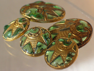 Before I start with todays batch of graphics I thought you might like to see some amazing buttons that have come into the Legacy. These are very rare plique-à-jour buttons. What a treat for button collectors and amateurs like myself! It is hard to find examples on line and now we have a set in two sizes. To quote Wikipedia;"Plique-à-jour (French for "letting in daylight") is a vitreous enameling technique where the enamel is applied in cells, similar to cloisonné, but with no backing in the final product, so light can shine through the transparent or translucent enamel. It is in effect a miniature version of stained-glass and is considered very challenging technically: high time consumption (up to 4 months per item), with a high failure rate. The technique is similar to that of cloisonné, but using a temporary backing that after firing is dissolved by acid or rubbed away.[1]"For the full article; https://en.wikipedia.org/wiki/Plique-%C3%A0-jour None of these have actual cracks. The clear green glass has ripples that reflect the sun differently.